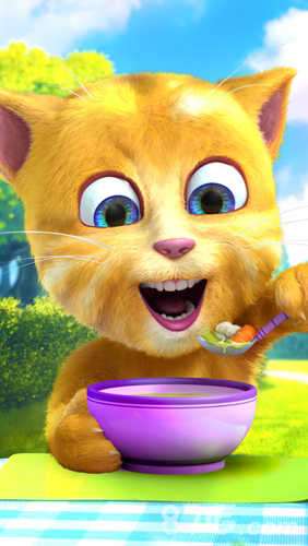 1、跟我一起吃饭”这环节简直就是ASMR!小时候因为迷上my talking系列游戏也就无意中下载到这个,当时还没有认识到ASMR,就只是觉得金杰吃饭的声音和画面都很疗愈。这次再重新下载这个应用也是因为想要怀缅曾经几乎每天都会打开来观赏一会的“跟我一起吃饭”环节,真的很高兴此应用没有被卸掉或是做太多无谓的修改,依然是当初那个吃每一口一样的饭菜仍旧觉得满足且笑脸盈盈的金杰小猫。