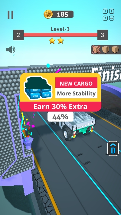 4、用户需要平稳的驾驶,千万不能够让货物掉下来导致游戏失败。