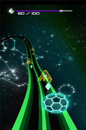 弹球将随节拍跳跃。聆听神奇的节拍,跟随节奏并凭借乐感引导弹球在砖块间跳跃。请别敲击!这不是敲击类型的手游。