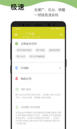 一个木函作为一款一个效率工具的集合,一个木函app拥有非常清新的界面,美观简洁但又精致的界面和交互,注重每一个细节,使用起来非常舒服,功能众多且强大,包括应用程序管理(预装卸载,检查权限、复制信息)、文字处理(文本编码、提取、替换、叠加)、中英翻译、字典、词典等,并且还在实时更新中。软件体积虽小,但是超级实用。基本可以满足你日常的所有需求,非常实用!