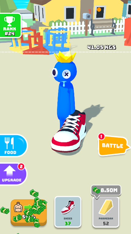 进入到手游当中我们将扮演一名什么都吃的彩虹朋友,通过不断的吃食物从而增加体重更好的赚取钞票。