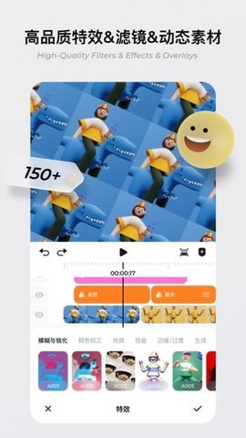 3、在手机上,您可以根据需要快速编辑并添加不同的特效,使视频变得更好。