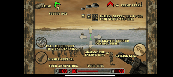 抢滩登陆作为一款从同名端游移植过来的实时360度全方位射击手游。该游戏以军事战争为基础。我们的用户可以使用抢滩登陆2002手游单机中的加特林机枪、火箭等武器进行攻击,从而消灭敌方的全部部队。