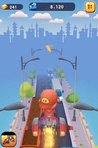 2.一款轻松易上手的休闲3D跑酷手游,追求流畅与刺激的疾速跑酷感,在手游里游戏者在手游中控制猪猪侠,在地图中追逐抢了迷糊老师物品的普利斯教授。