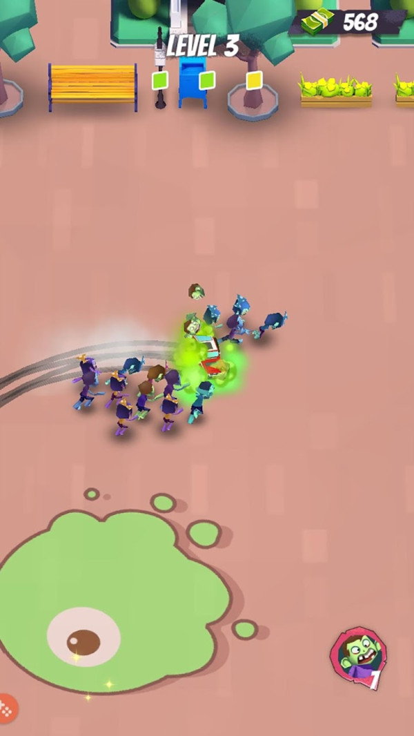 驾驶着战车将呆萌的僵尸全部碾碎,消灭的僵尸数量越多在通关你能获得的钱就越多;