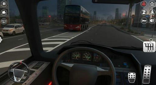 1、游戏采用驾驶模拟视角,在游戏里用户需要操控巴士的方向盘、加速、制动等,体验逼真的驾驶感觉;