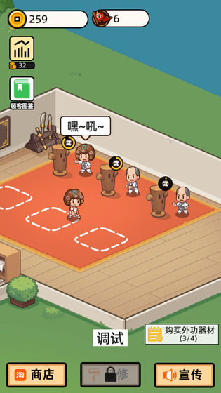 3、用户需要购买更多的地皮,扩大自己的武馆规模,让武馆可以容纳更多的顾客。