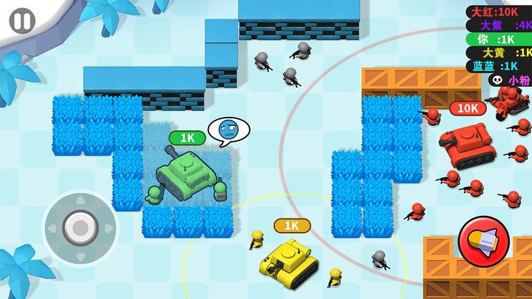 3、游戏中所有的用户都是平等的,没有任何的装备和道具可以影响游戏的公平性。在游戏里面有多种道具供用户选择,包括炸弹、导弹等,使玩家可以根据情况选择最适合自己的道具。
