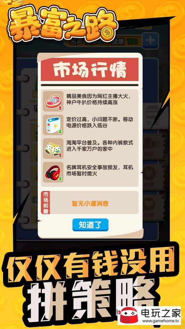 暴富之路作为一款精彩刺激的手游。这个手游基于投资和挑战的概念,通过向游戏者介绍不同的投资机会和财富秘籍,帮助游戏者成为自己的财富巨头。在这个对高速资本主义和国际商贸发展充满兴趣的时代,该手游手游一定会让你爱不释手。