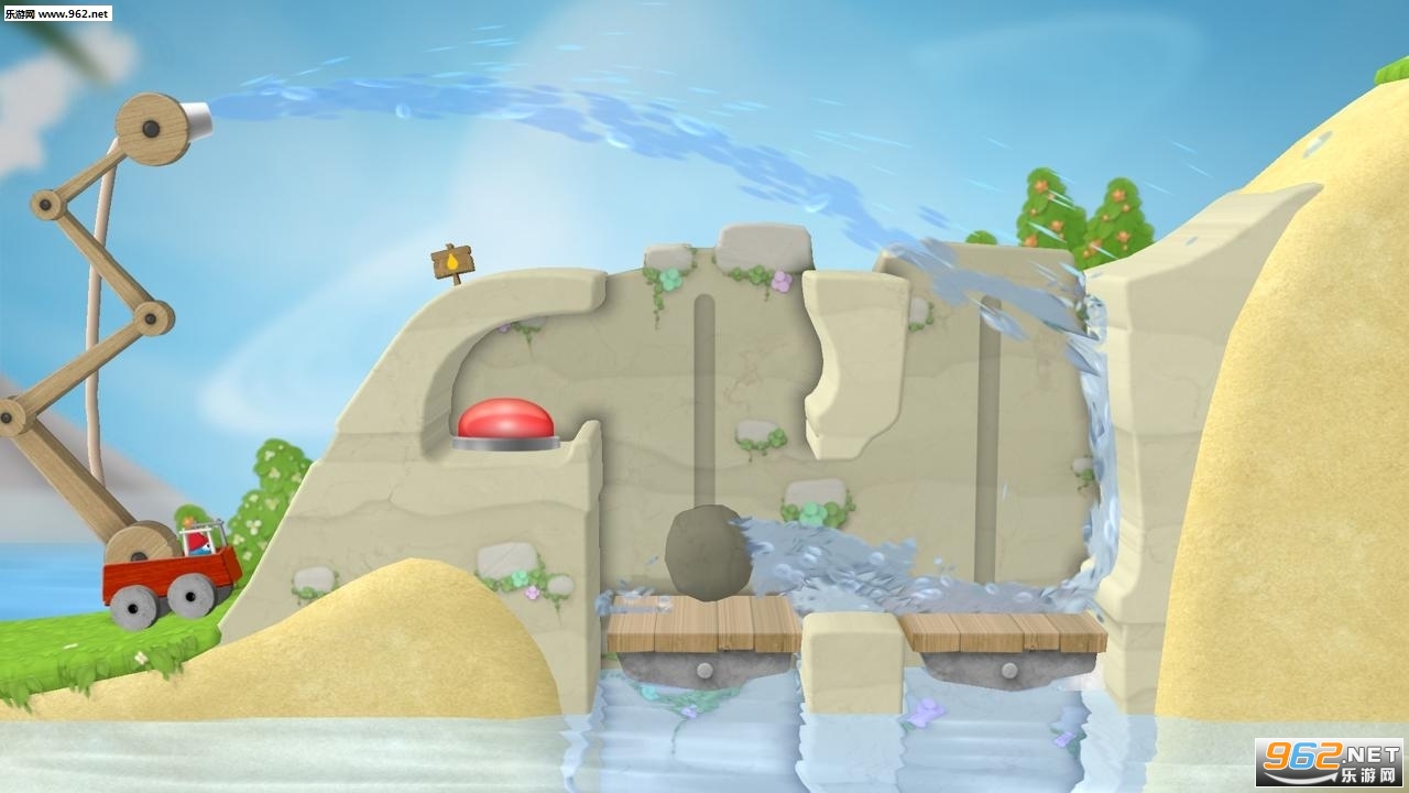 大块物体、石块和轮齿,天啊 – 使用高压水枪的力量移动大量冰块和石块,转动巨大的轮齿,并且抑制陷阱,以便到达和熄灭最后一堆火。