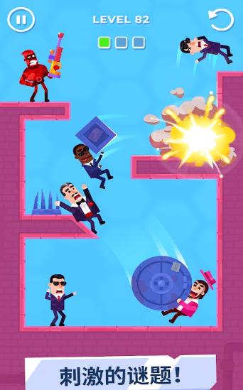 超多的关卡可以尽情挑战,尽可能使用一击来打败敌人,能用一颗子弹就绝不用两颗;