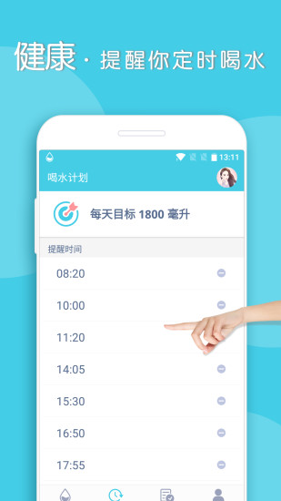 4、同时,喝水提醒App中也有定期提醒。您可能会因为工作繁忙而忘记喝水,定时提醒功能会给您温馨提醒。