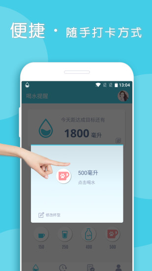 2、使用方便,丰富美观。每天喝水打卡,提醒时间可自由定制,挑战一下。