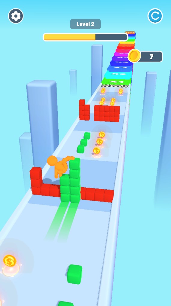 1、超多的方块等着你。收集相应的颜色来增加高度。