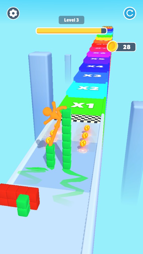 3、前进的过程中可以收集到很多方块。每经过一个障碍物,就会减少一些方块。
