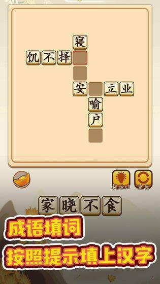 1. 传统中华成语进行填空,海量的关卡设计挑战,顺利去解锁出不同房屋居住。