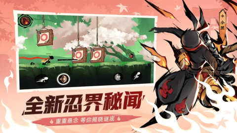 1、水墨风格的游戏界面,融合武士故事情节,构建了一个奇妙而神秘的忍者世界;