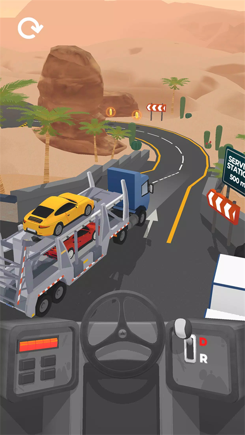 2、游戏的操作其实很简单,点击屏幕中的方向盘按钮即可控制车辆前进