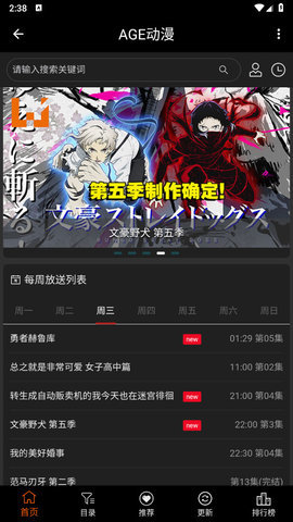 3、首页可以看到每周更新的剧集列表,并且可以根据各种条件过滤剧集;