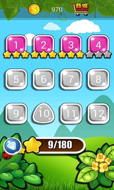 试着捡起所有的宝石星方块。你剩下的宝石星格越少,你得到的奖金就越多。