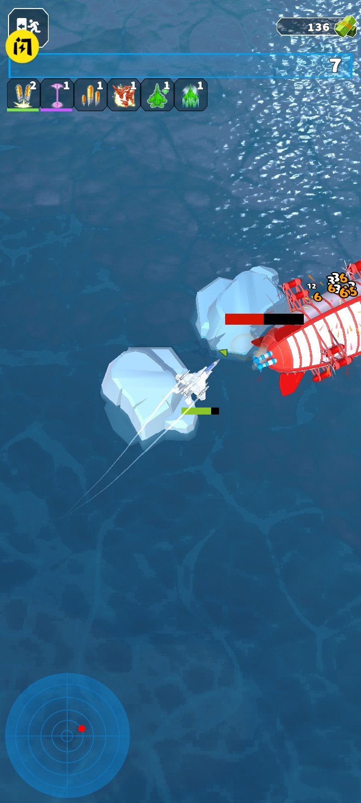 1、控制飞机在场景中战斗,击败敌人,获得经验和升级,获得随机技能继续战斗,完成更多级别的挑战。