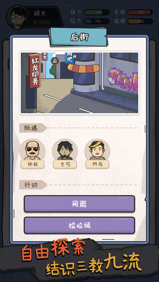 3.你可以在城市中自由探索,随机结识各色人等,面对超多的随机事件。