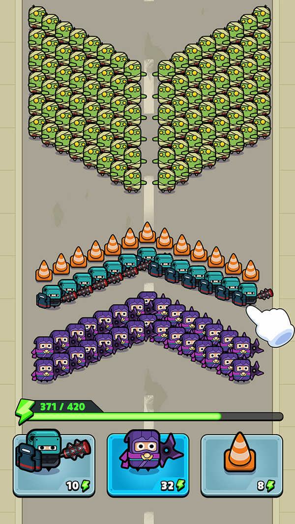 通过排兵布阵来让玩家的火柴人抵御汹涌而来的丧尸,展现你的战术思想,完成关卡。