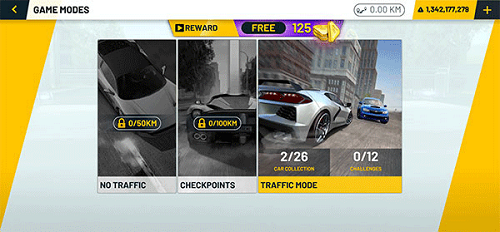 1.进入游戏中我们这里有着高达四种的游戏模式让你尽情选择,驾驶着自己喜欢的赛车在这场游戏里开始尽情的狂飙吧;
