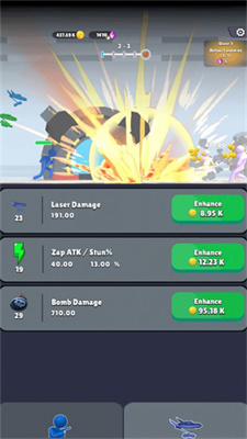 1、火柴人对战用户玩法简单,操作方式灵活。通过摇杆控制人物的运动,通过攻击按钮来攻击敌人。在挑战中获胜能够获得游戏积分和金币,从而提升自己的等级和实力。