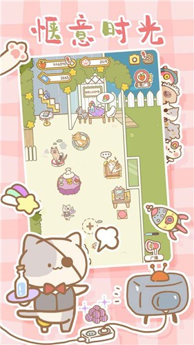 1、在游戏中体验全新的模拟经营玩法,感受如果给小猫咪进行spa,学习一下如何让猫咪更加的舒适。