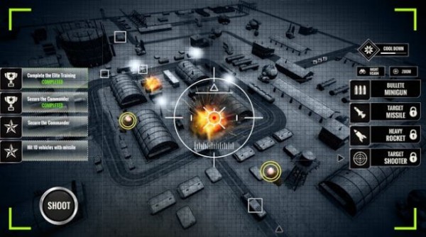 瞄准地面的军事基地,直接使用火炮攻击并取得最终胜利。