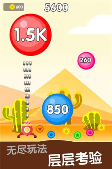 该游戏的整体给人的感觉就很可爱,在游戏里玩家左右滑动屏幕来移动炮台,炮弹射击弹出来的球,直到球球消失,数字越大,需要射击的次数就越多,球消失后会变成金币,收集的金币数量达到一定的量即可进入下一关。