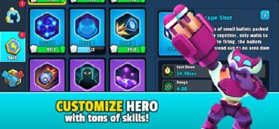 手游一 开始游戏者就会获得3个不错的初始英雄、以及5个不同的技能。