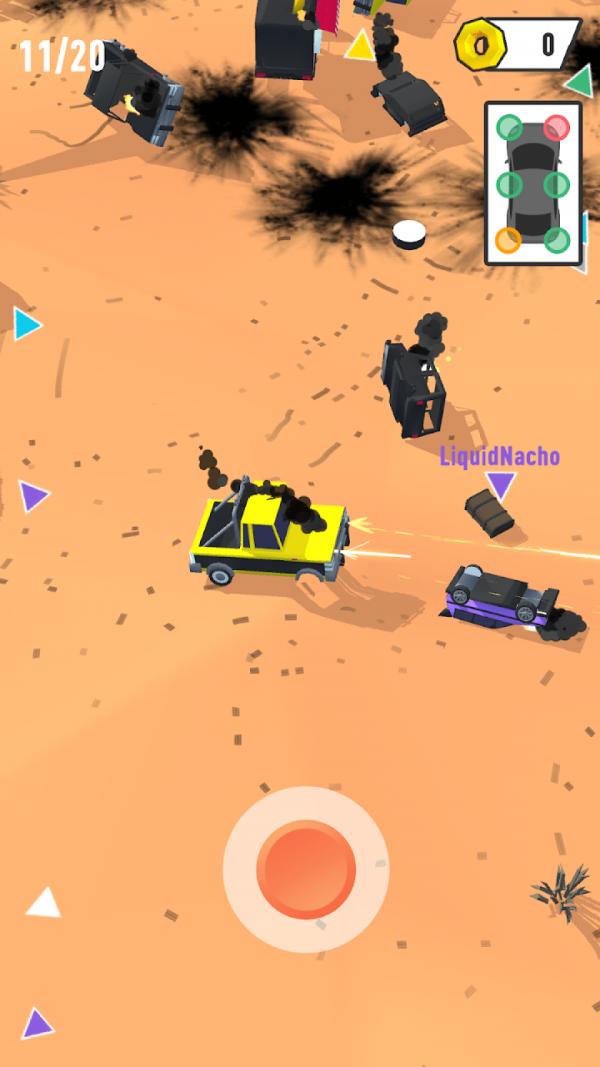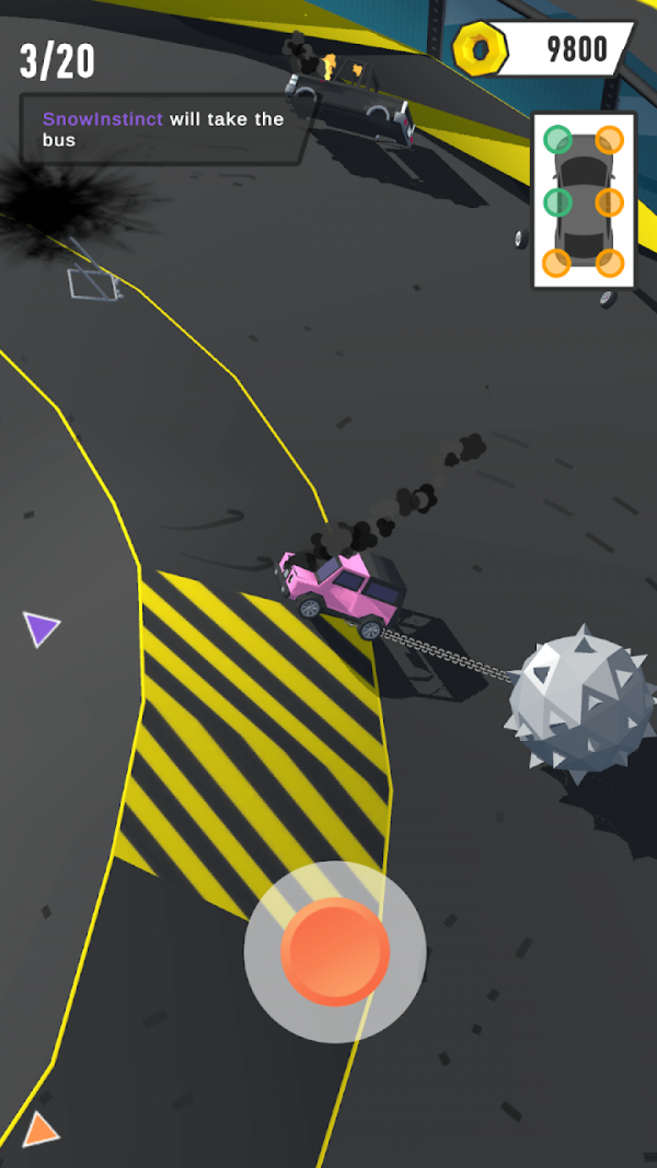 3、需要仔细的观察所有对手,灵活的驾驶自己的汽车,躲避所有敌人的攻击。