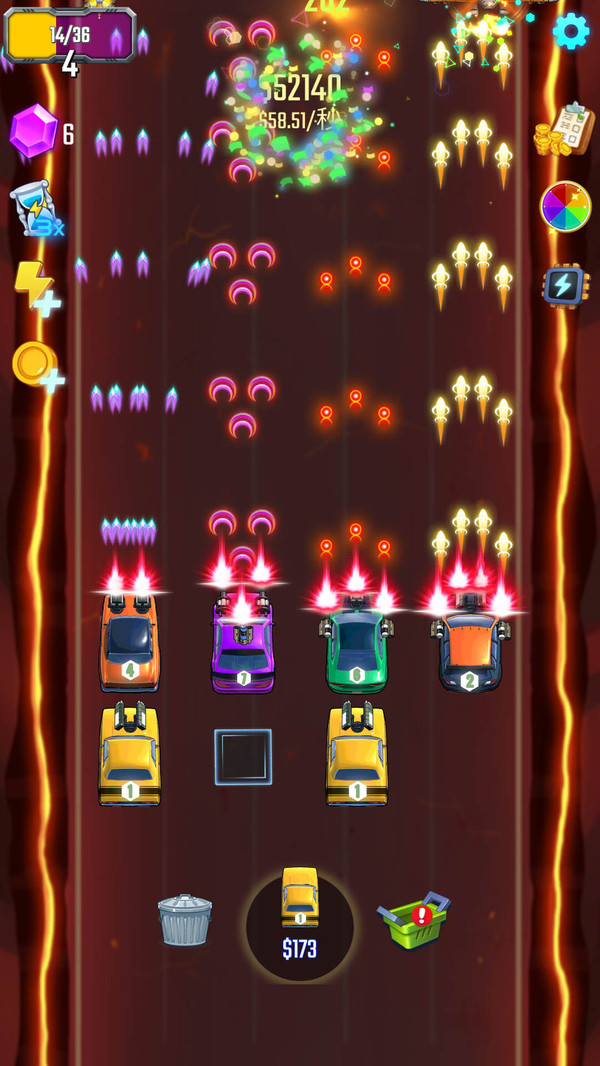 3所有的战车攻击方式各不相同,他们拥有不同的攻击范围和攻击力,合理利用他们的特性和攻击特效,获取手游最高分。