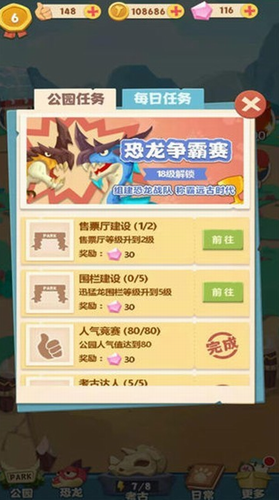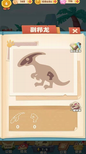 3.只要集齐恐龙的化石,即可通过生物科技将其复活,并让它们生活在你的恐龙公园中。
