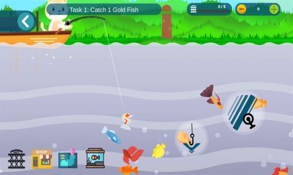 小猫钓鱼模拟器:操控小猫垂钓!养成类画风偏2DQ版卡通的游戏!小猫钓鱼模拟器手游作为一款可以坐在船上来进行钓鱼的小游戏,在游戏里玩家需要根据天气、时间等因素选择不同的鱼饵,并适时调整投放的位置和钓鱼的深度,尽可能多地钓到各种大小鱼类,钓到的鱼可以出售或进食,赚取游戏币或增加用户的血量。