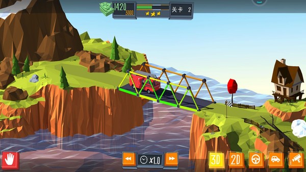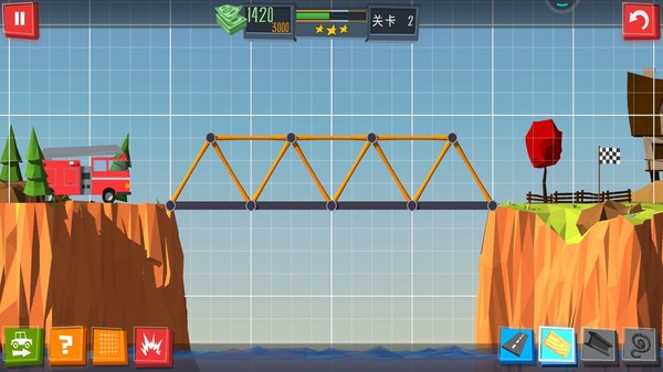 2、顺利的通车是检测桥梁的标准,有很多的创意的游戏玩法模式将可以让玩家来感受到这款游戏的精彩。