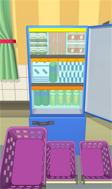 2、它有一个很简单的挑战玩法,你想要把冰箱的架子装满不同的物品、杂货、饮料等;