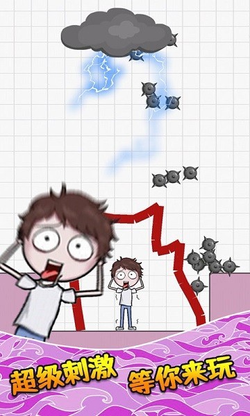1、游戏中,根据小男孩的位置和出现的危险划出一条线,并发起救援。