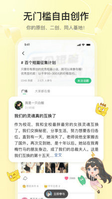 3、社交互动:用户可以与其他作者联系,相互学习和提高。