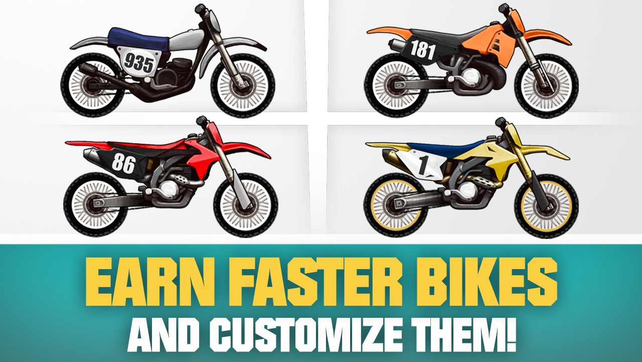 疯狂摩托车技2支持最爽快的摩托驾驶挑战,在游戏里面画质是非常的清晰,在游戏里玩家将驾驶摩托车来进行比赛,并且使用更多的技能来超越你的对手们,非常多的魔头车等你用户进行开启驾驶,在游戏中你可以体验最刺激的摩托驾驶,你会在越野赛道进行挑战,整体的玩法过程感觉十分的爽快,给人感觉相当的刺激。