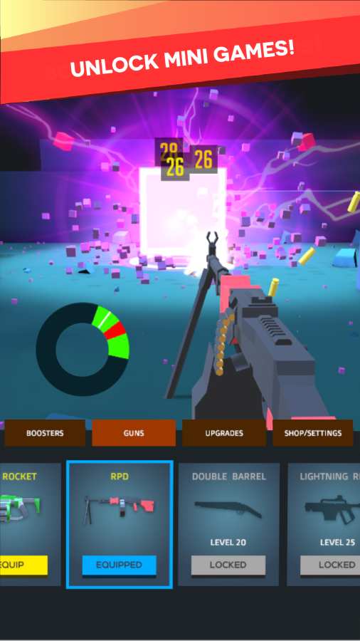 1赚取更多的金币,以用来升级你的枪械,用不同的特效来帮助你更好的闯过每一关。