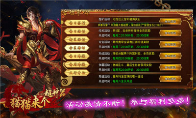 猫猫来个超神器作为一款非常刺激又有趣的冒险游戏。在游戏里面,在游戏里玩家可以选择单独行动,也可以在游戏里和好朋友组队,这样就可以跨服竞技,也可以组队打副本。在游戏里玩家需要完成大量的地下城任务。通过完成任务,你能获得更多的装备,感受燃烧的激情岁月。因为我们面临的场景非常精彩,我们还会面临更多的战斗。