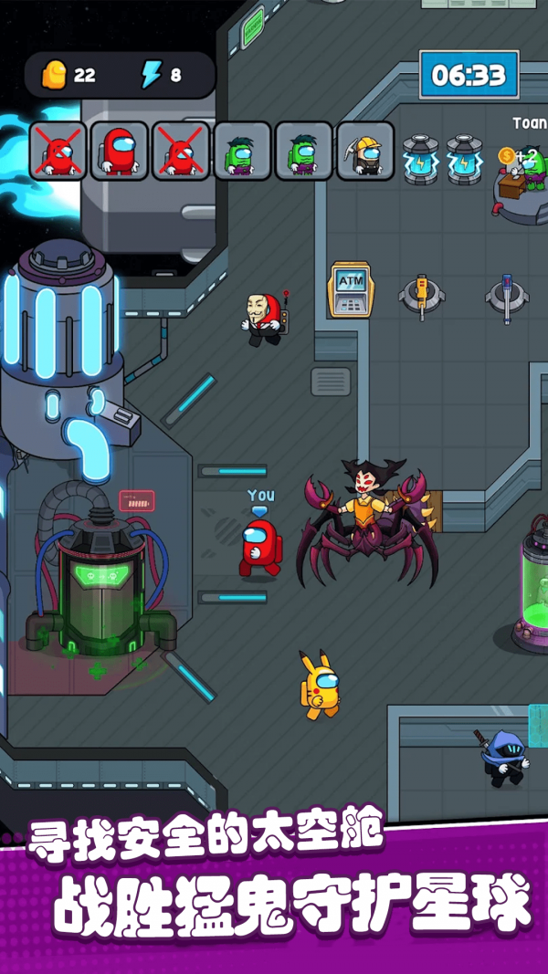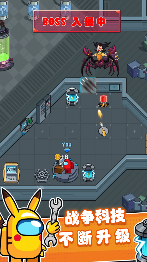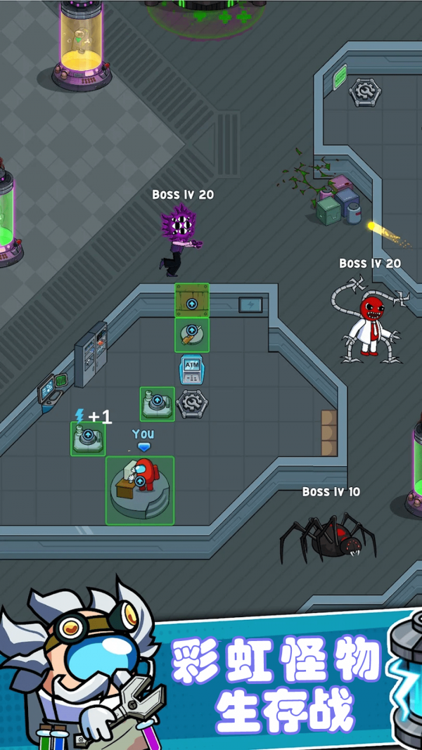 快乐星球模拟器作为一款2D塔防小游戏。快乐星球模拟器游戏中用户需躲避彩虹猛鬼的追捕,寻找适合自己的太空舱躲避,并发展经济,建造防御系统,抵御彩虹猛鬼。快乐星球模拟器游戏中用户只可以在房间中的空地板上进行建造,在游戏里玩家点击空地板后,出现建筑菜单。