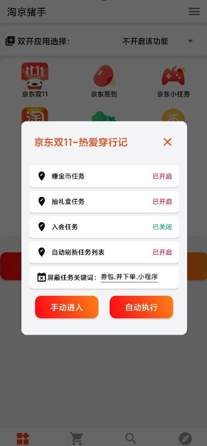 2、自动化任务:淘京猪手内置多种自动化任务,如自动签到、自动领取优惠券、自动抢购等,让用户无需手动操作即可完成各种任务。