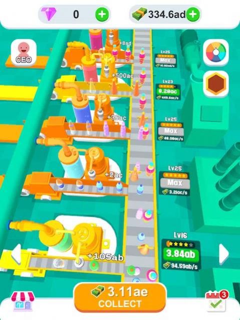罐头饮料厂:饮料工厂,自由放置!放置类画风偏2DQ版卡通的游戏!罐头饮料厂游戏作为一款有着丰富饮料经营方式的放置游戏,在游戏里玩家需要选定厂址,并选择制造罐头饮料的种类,比如碳酸饮料、果汁等,在游戏里玩家需要进行原材料采购、生产暴饮、罐装装箱等一系列操作,使得产品质量、生产效率和成本控制都达到最佳状态,在游戏里玩家还需要管理销售部门,促进销售渠道的拓展,扩大市场份额。