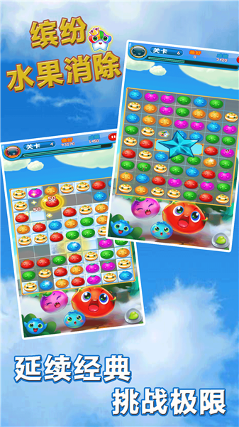 1、缤纷水果消除参与消除趣味,享受经典水果的视觉冲击。