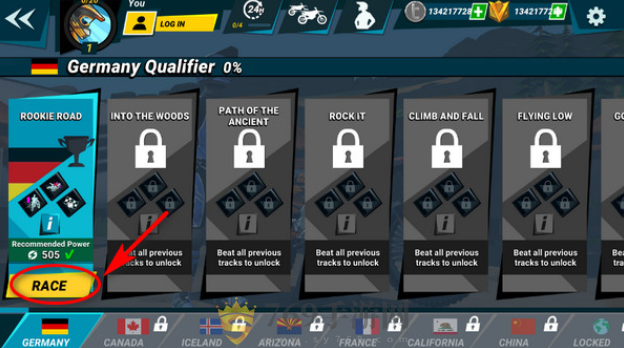 首先打开疯狂技能越野摩托车3手游,点击race;