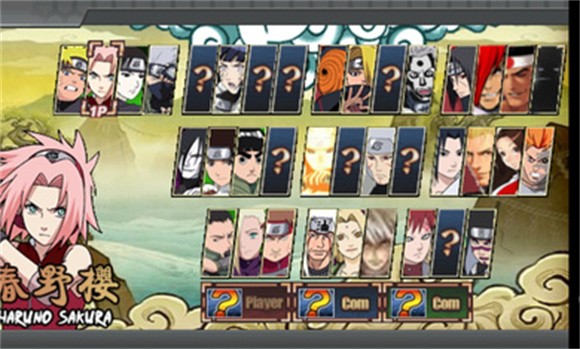 2、火影VS拳皇是街机拳皇风格背景,有很多卡通人物,在游戏里玩家可以选择组队;